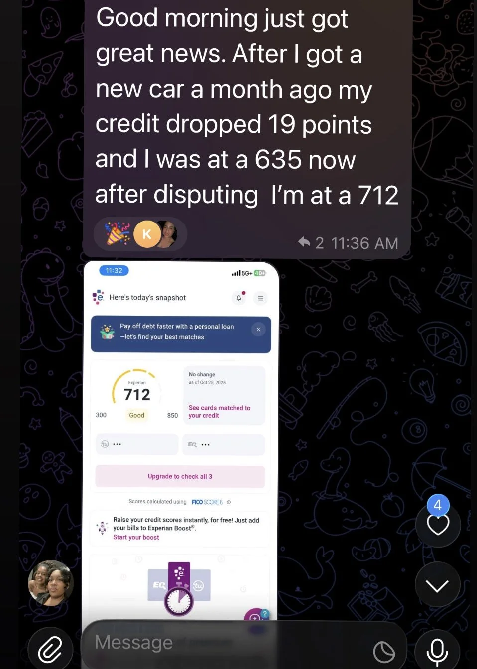 “Tyshae helped me get accounts removed from my credit report, I finally feel financially free.”